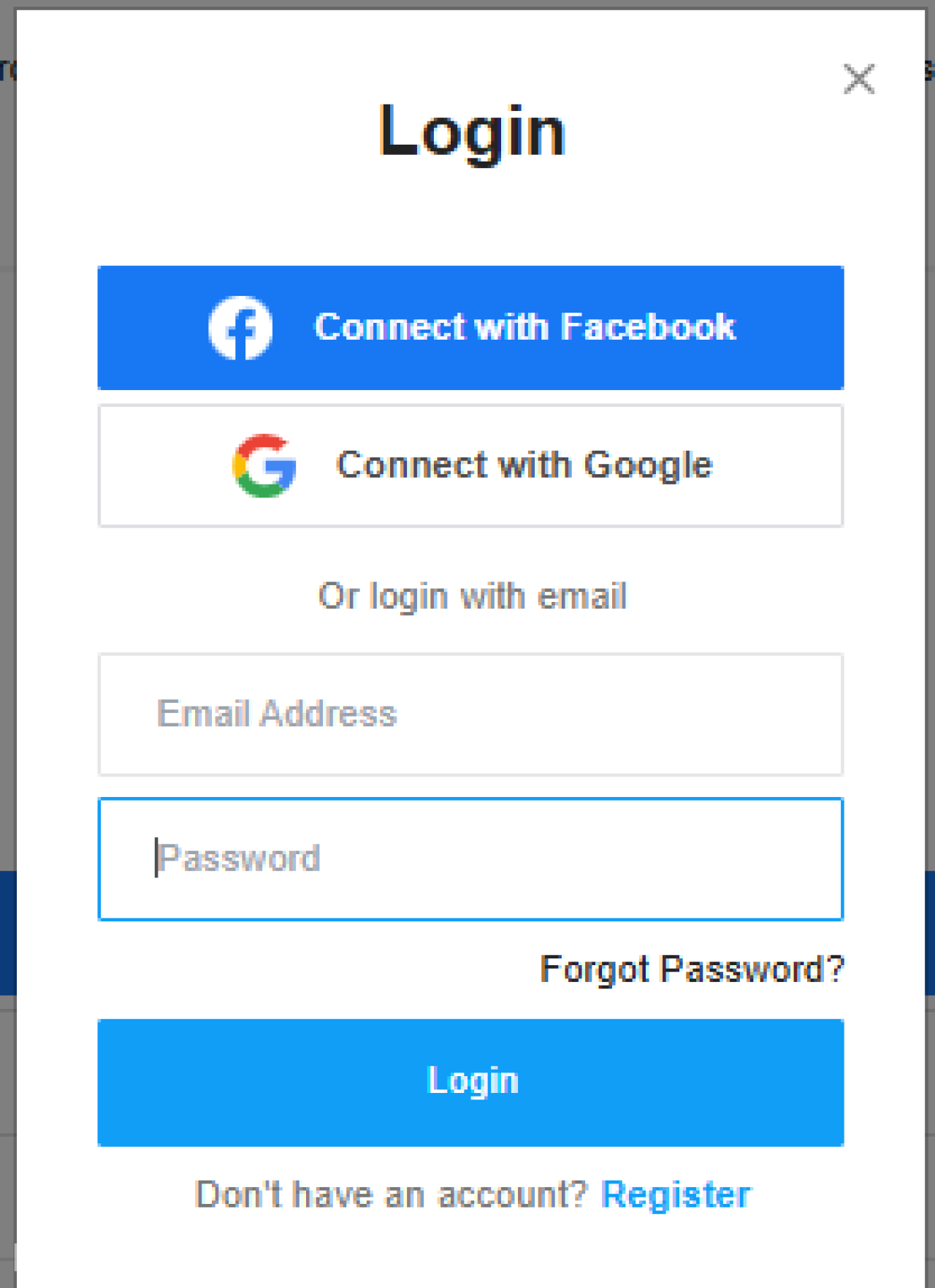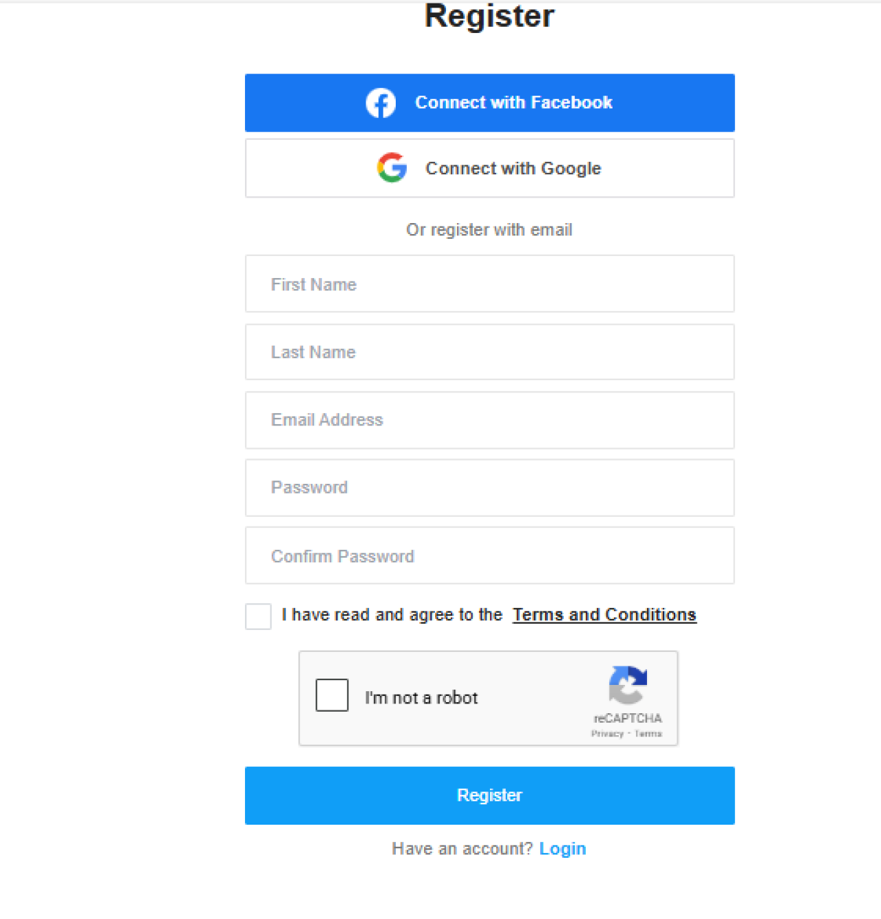 You may also be able to register with a Google account, depending on how the registration form is displayed (login widget shows Login with Google).