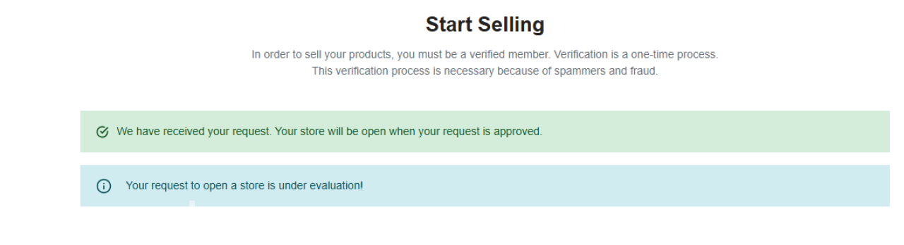 The request will be receivedIn order to sell your products, you must be a verified member. Verification is a one-time process. This verification process is necessary because of spammers and fraud.